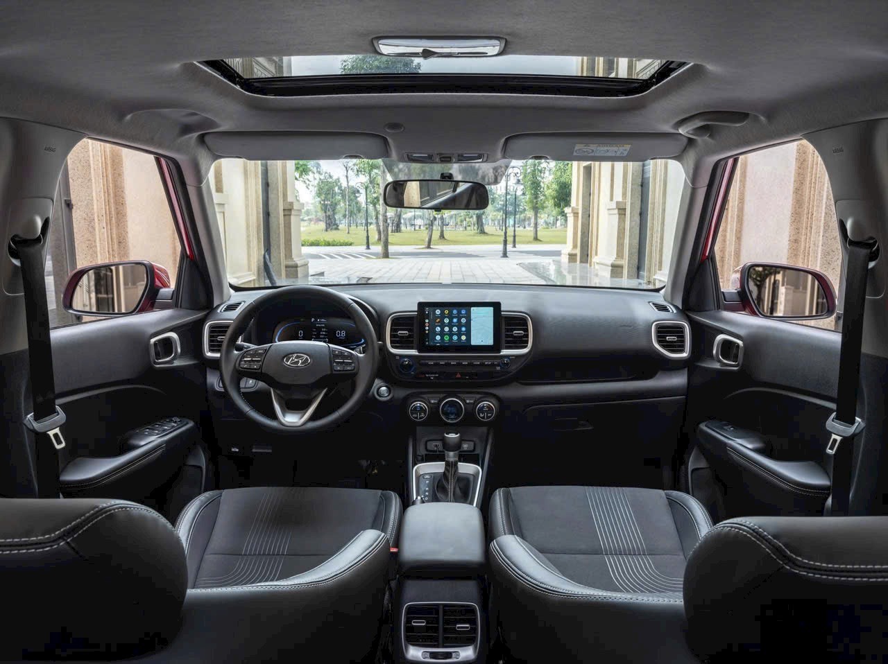 Bên cạnh đó, Hyundai Venue còn có camera lùi sắc nét, giúp việc đỗ xe trở nên dễ dàng và chính xác hơn bao giờ hết. Và riêng bản đặc biệt thì xe Venue còn được trang bị thêm cửa sổ trời đi kèm với thanh giá nốc giúp người sửa dụng xe có thể để đồ trên nốc xe khi có những chuyến đi du lịch, hoặc đi phượt cùng gia đình. Điều này giúp xe có thêm nhiều không gian bên trong hơn khi đồ đạc và hành lí đã để ở phí trên giá nốc của xe, bên cạnh đó xe cũng đi kèm với các chế độ lái giúp xe linh động hơn có thể dễ dàng di chuyển hơn trên các cung đường có địa hình và đường xá khác nhau.
